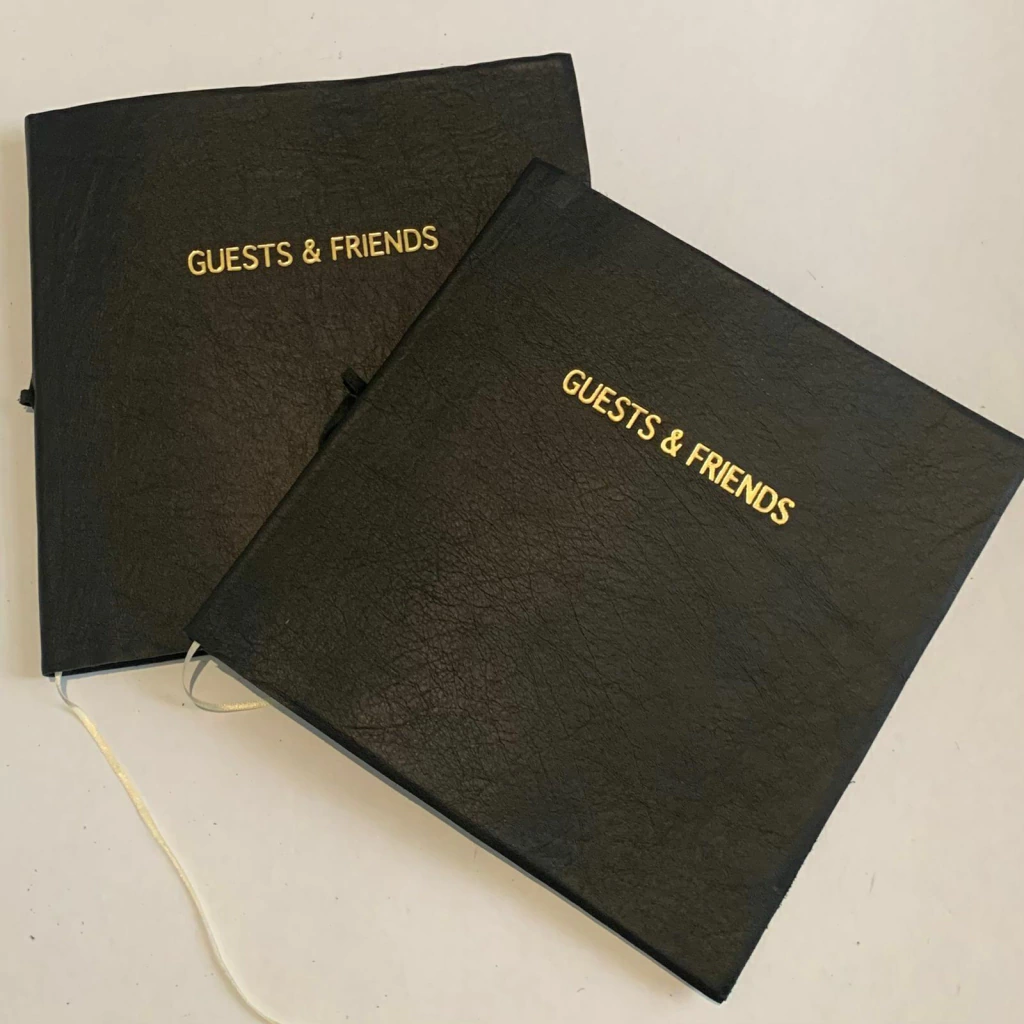 Cuadernos con tapa de cuero de gamuza y cuero. Tapa blanda o tapa dura. Algunos con inscripcion Guests & friends (ver titulos).